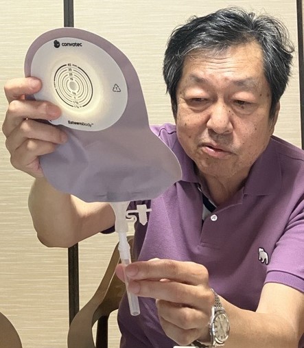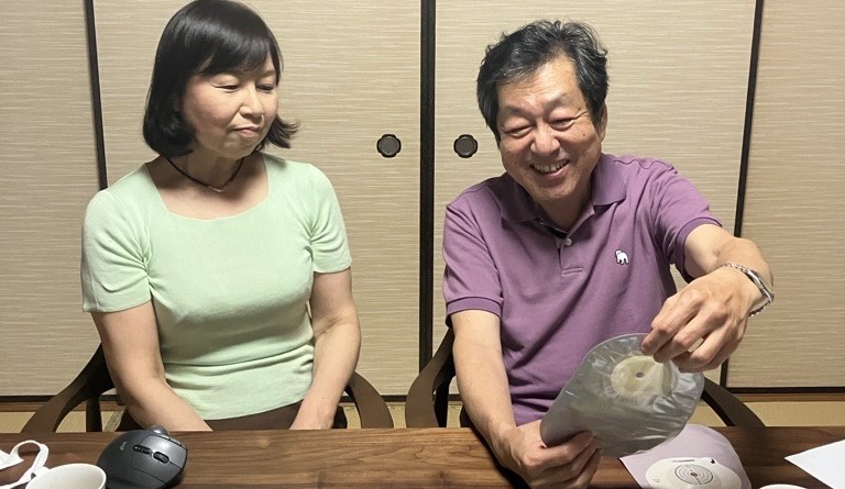 コンバテック新製品のストーマ装具エスティームボディ™ウロ(尿路用)を試していただき、同製品に切り替えたストーマ保有者の後藤安正先生*。今回は奥様にもご同席いただき、エスティ―ムボディ™ウロ(尿路用)に変えた決め手や同製品の感想についてお伺いしました。